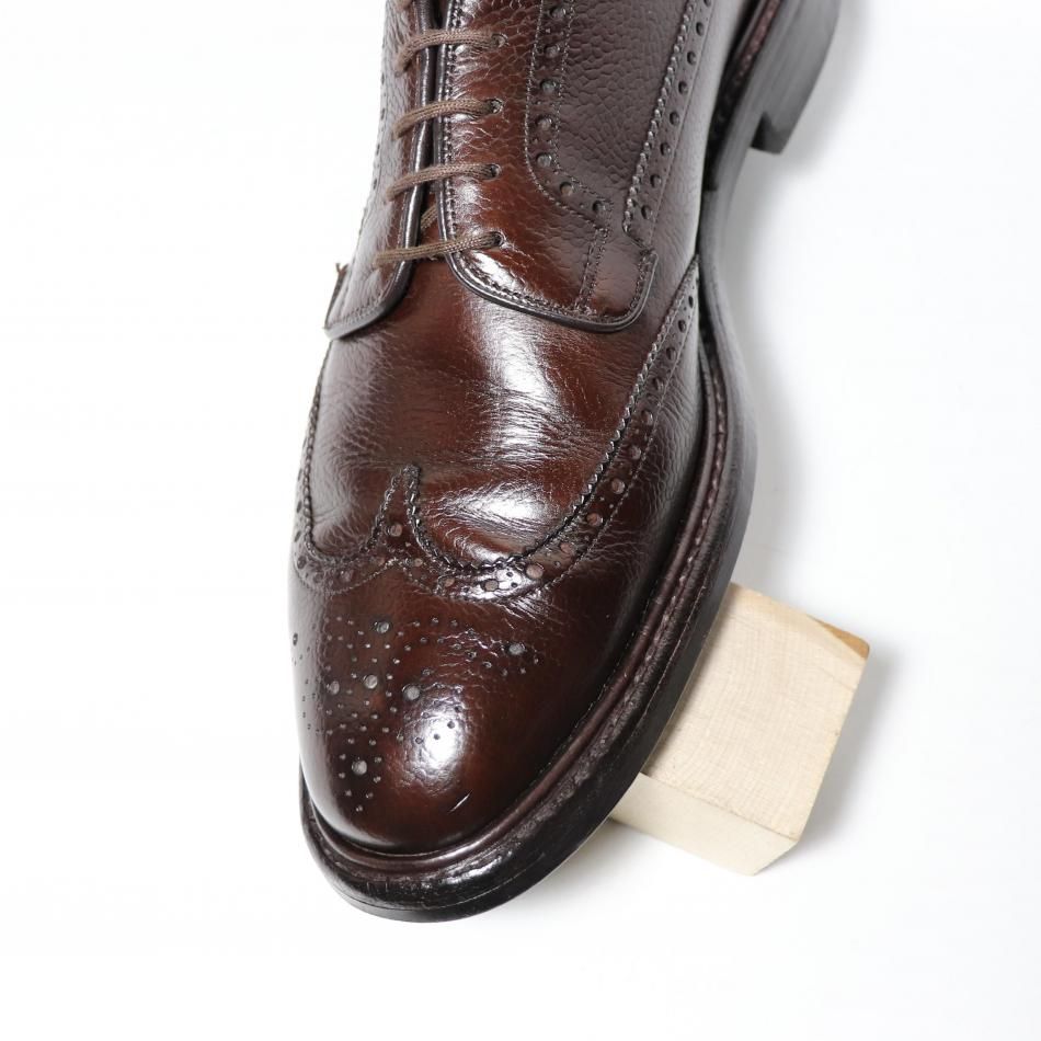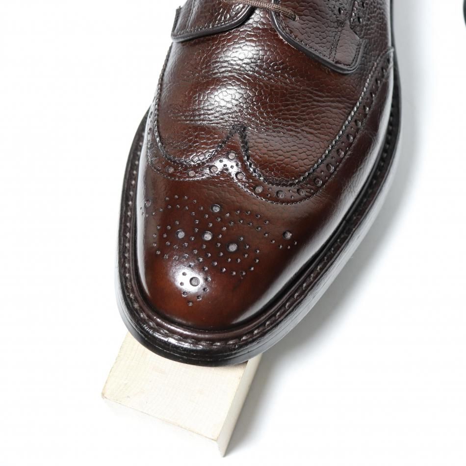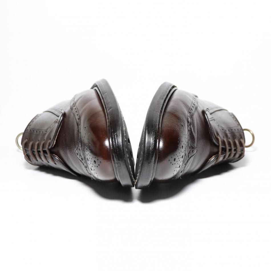・アッパーはハイランドグレインに近く、エボニーカラーが少し暗くなった印象のブラウンのグレインレザーに、ソールはダブルのダイナイトソールにストームウェルト仕様となります。